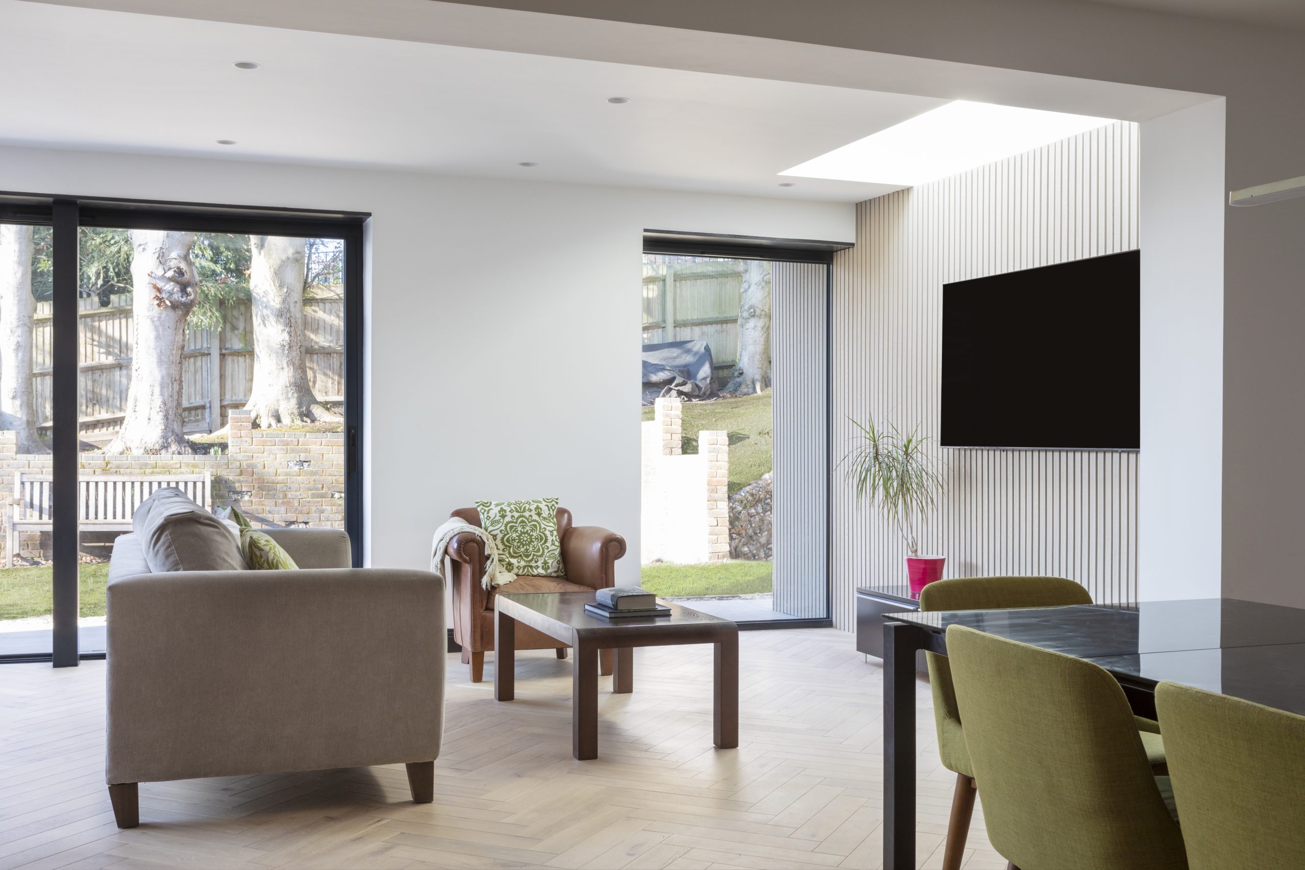 Reconfiguring and extending the first floor to create a kitchen dining and family living area with good connection to the garden and incorporating plenty of natural light.