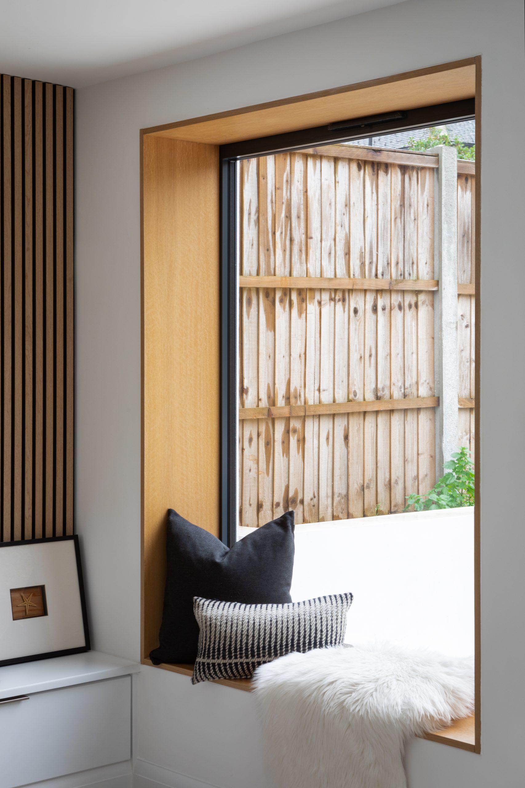 The brief was ‘light and airy’, delivered through wood line roof light reveals and a wood lined window seat.